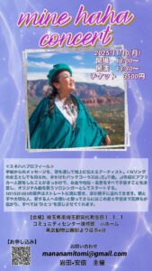 魂に響く愛の歌声 MINEHAHAコンサート 2025年10月13日(祝) 2025 10/07 みんなで愛と勇気と希望を共有できる素敵な時間を過ごすことが出来たら嬉しいです 滋賀県長浜市のReBornの会場にてお待ちしております コンサート よかったらシェアしてね! mihehaha concert 2025年11月10日(月) 愛・感謝 自分の中の光に出会う MINEHAHA ボイスヒーリング 2025年11月14(金)