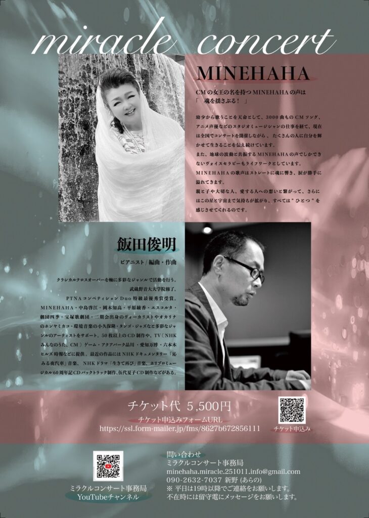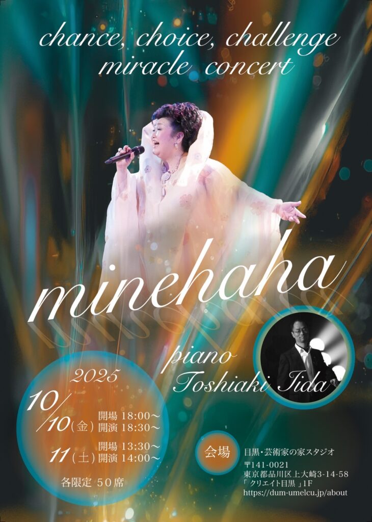 minehaha chance, choice, challenge miracle concert 2025年10月11日(土) 2025 7/10 コンサート よかったらシェアしてね! MINEHAHA Concert ~ありがとう~ 感謝の集い 2025年9月21日(日)