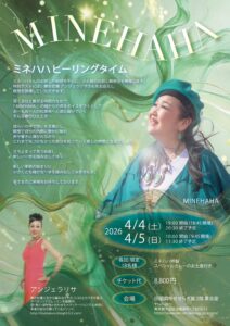 ミネハハ クリスマスライブ with スペシャルディナー&トーク in クワトロフォリオ 2025年12月15日(月曜) 2025 11/27 参加ご希望の方は残りわずかのお席となっております。お問合わせは mananamitomi@gmail.com 岩田 まで。 コンサート よかったらシェアしてね! ミネハハコンサート 心を放て、大空に。今、動き出そう。2026年2月20日 金曜 MINEHAHA ヒーリングタイム 2026年4月4日(土)・5日(日)